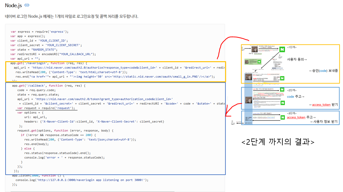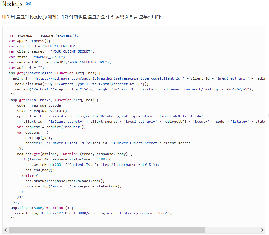 네이버에서 제공해주는 node.js코드는 2단계까지 과정을 밟을 수 있게 작성해 놓은 파일이다.