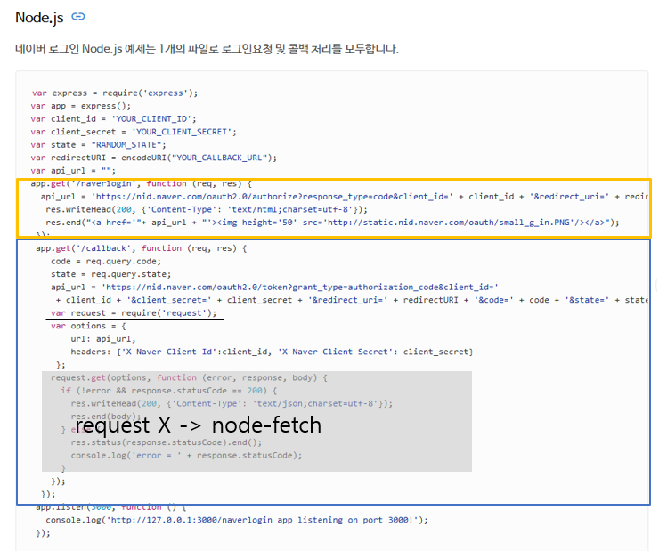 그래서 2단계 부분을 수정해서 node-fetch로 코드를 사용하였다.
