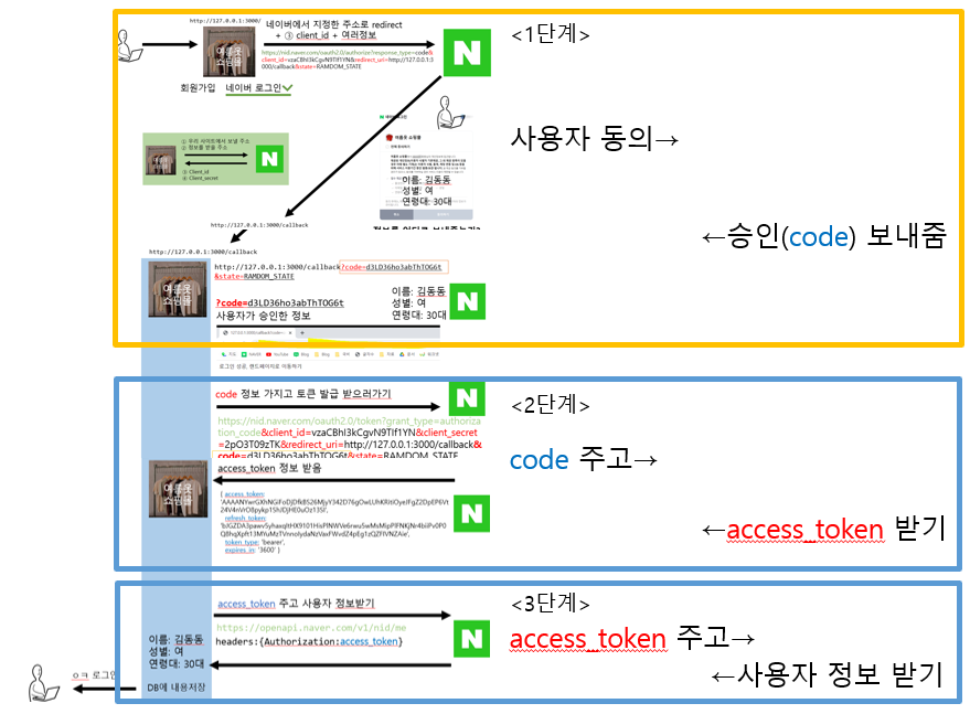 네이버 소셜로그인을 구현하는 사람들에게 도움이 되길 바라며 쓰는 글. 일단 소셜 로그인을 할때 어떤 원리로 이루어지는지 알아야 하는데, 다들 코드만 설명해주기 바쁘고 아무도 어떤 원리