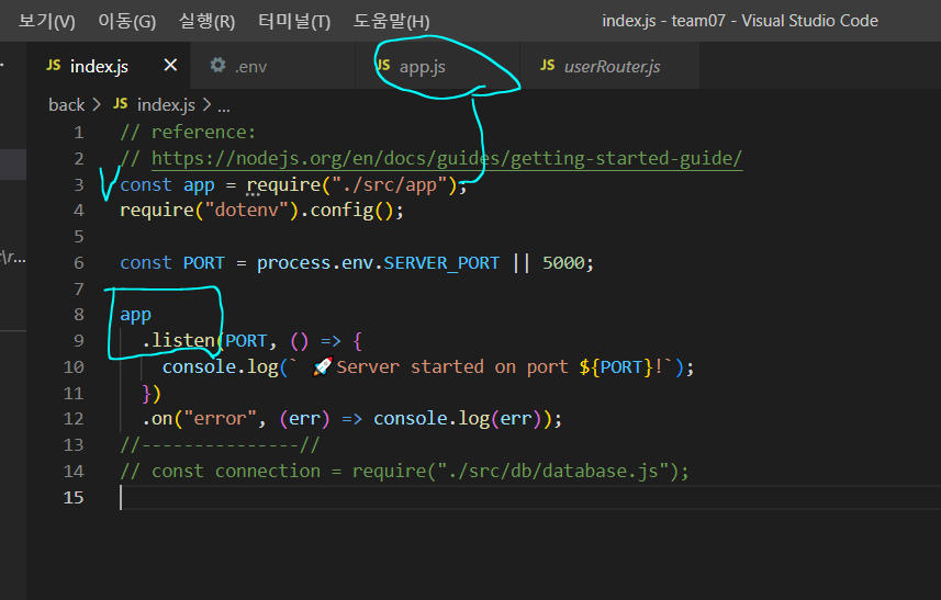 두번째 프로젝트를 할 때 팀원 분들이 작성했던 index.js파일