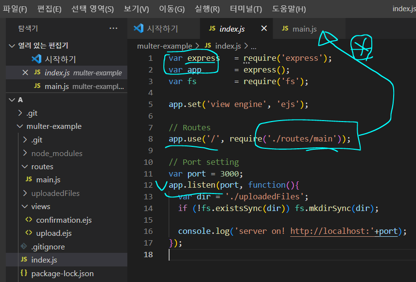 var express = require("express") 처럼 express를 불러오는 모듈도 굳이 index.js에 작성할 필요는 없고,